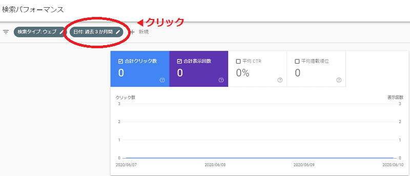 「日付:過去3か月間」の部分をクリックします。